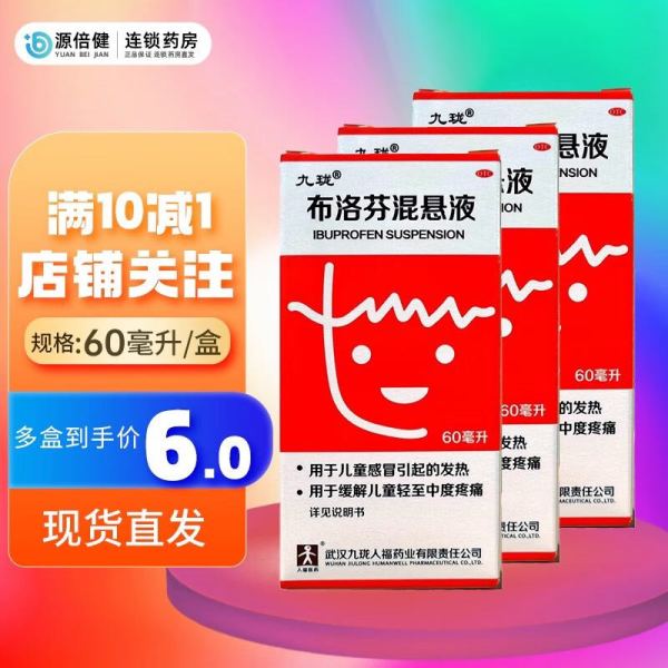 九珑 布洛芬混悬液 60ml/瓶 用于儿童感冒引起的发热 1盒