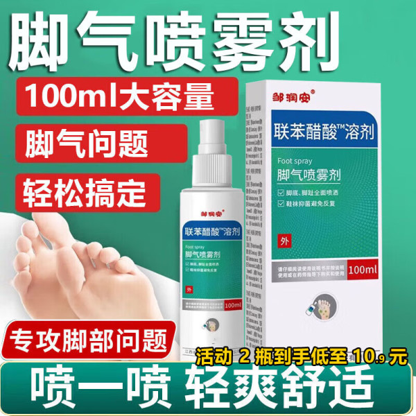 邹润安联苯醋酸溶剂狼毒脚气喷雾剂脚臭止痒脱皮烂脚丫可搭苄唑溶液使用 1盒装 100ml