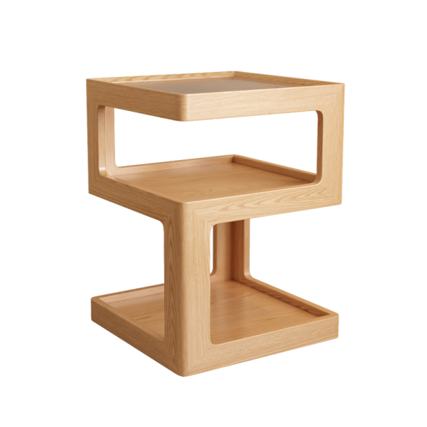 冬木实木小茶几客厅简约沙发边几轻奢高级感小户型现代创意几何边桌柜 实木边几-胡桃色