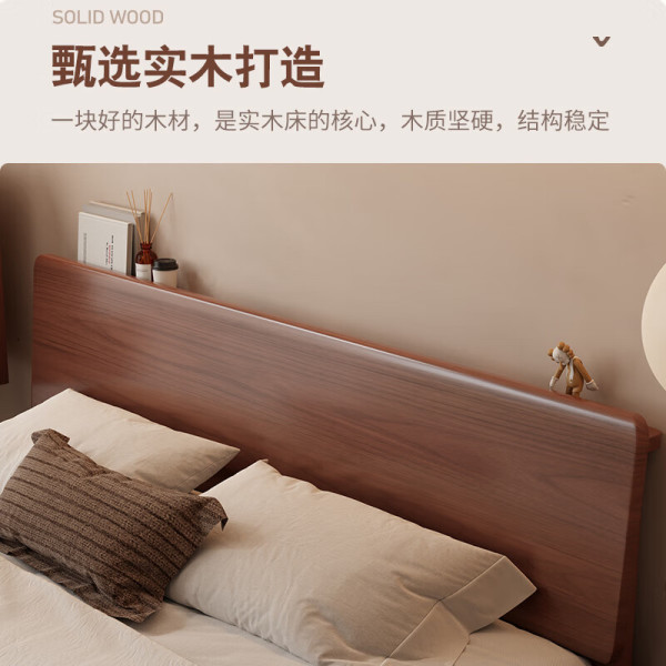冬木实木床简约现代1.8主卧双人床北欧高脚床原木新中式1.5次卧床 实木床(胡桃色) 1500mm*2000mm