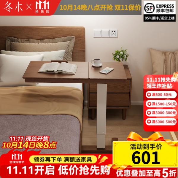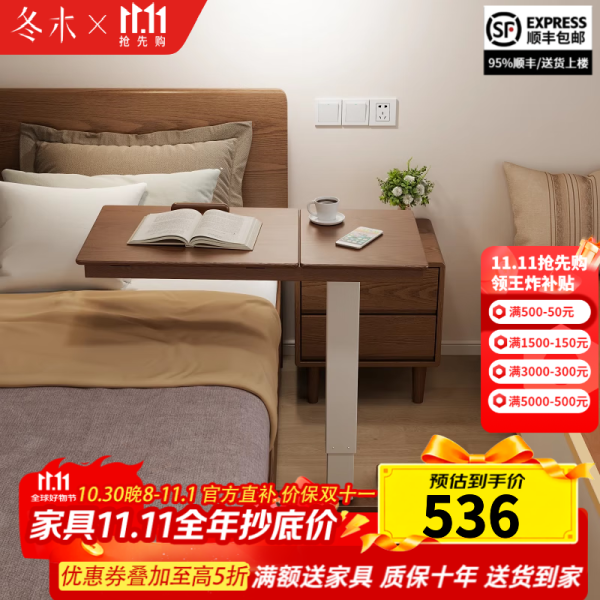 冬木 沙发边几升降实木床边桌70-110cm胡桃色