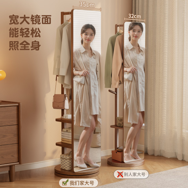 国家补贴:冬木 实木全身镜落地镜 可旋转移动试衣镜子 带挂衣架一体穿衣镜