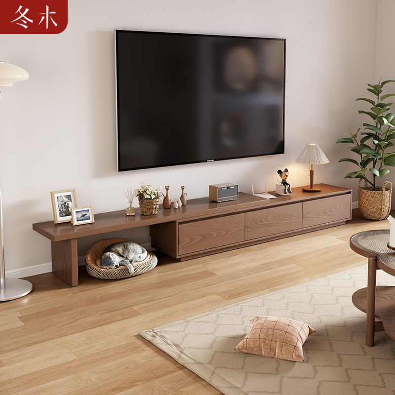 冬木实木可伸缩电视柜茶几组合小户型客厅家用现代落地柜电视机柜