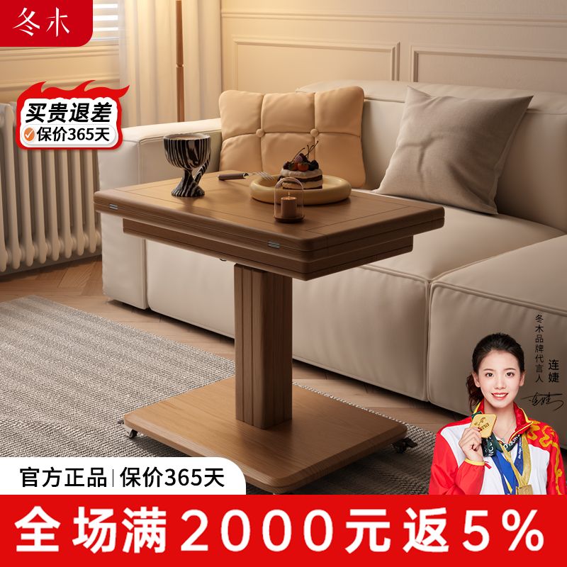 冬木实木折叠茶桌可升降小户型客厅家用沙发边桌可移动小餐桌边几