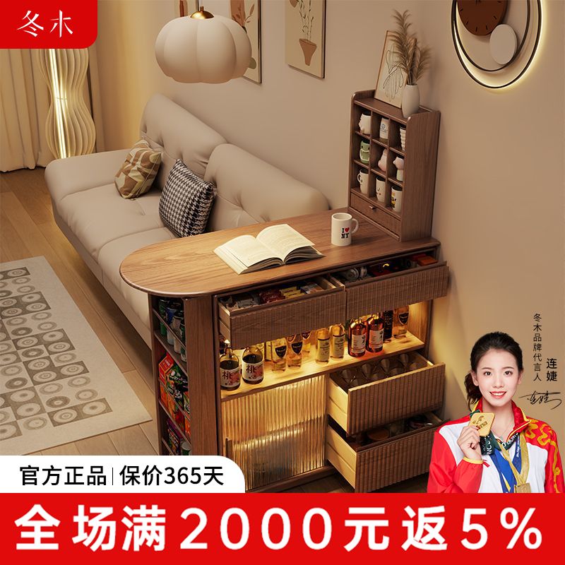 冬木实木吧台桌子家用阳台休闲可伸缩小户型隔断窄岛台餐边柜一体