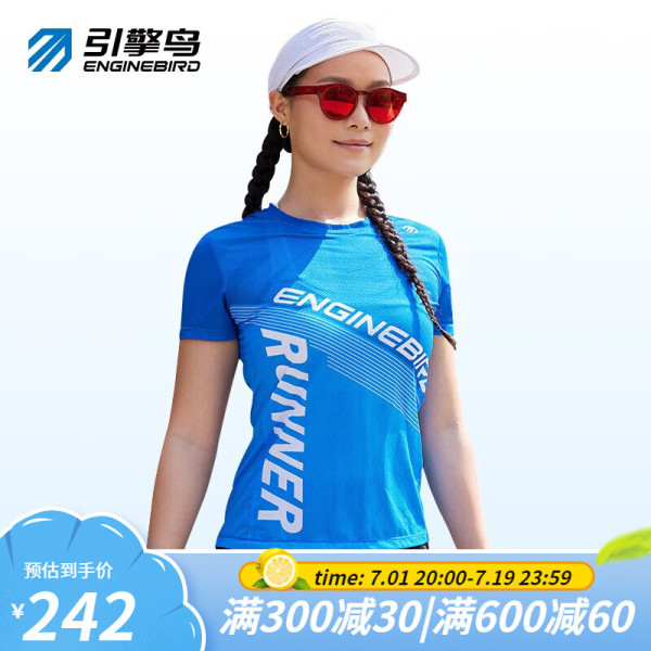 引擎鸟运动训练速干t恤男女跑步瑜伽快干透气上衣港百短袖修身 科技蓝(女款) XL