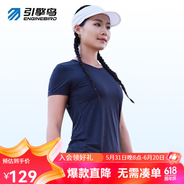 引擎鸟 擎鸟运动T恤异形纱速干衣女圆领短袖透气轻薄马拉松训练修身显瘦 黑色 S