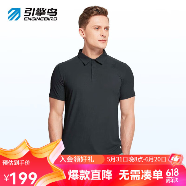 引擎鸟 擎鸟运动T恤男款polo衫速干衣商务翻领修身上衣轻薄透气高弹 黑色 M