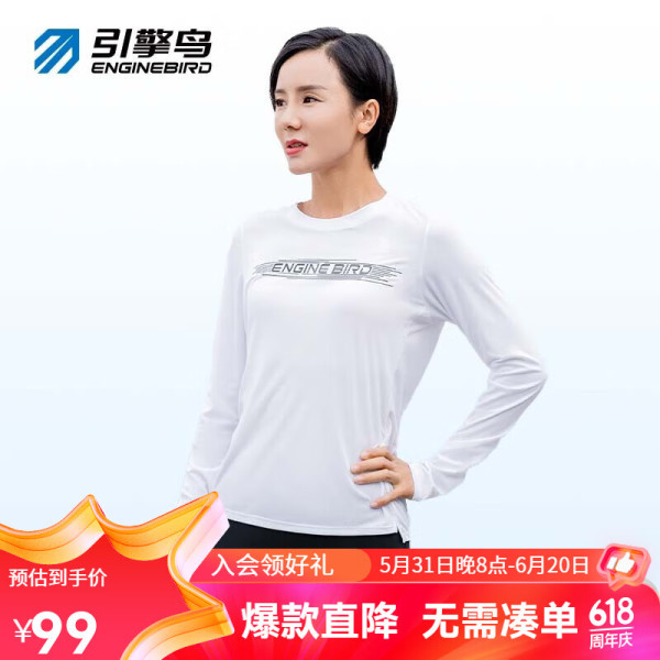 引擎鸟 擎鸟运动T恤长袖女款速干上衣休闲百搭健身训练轻薄透气 白色 S
