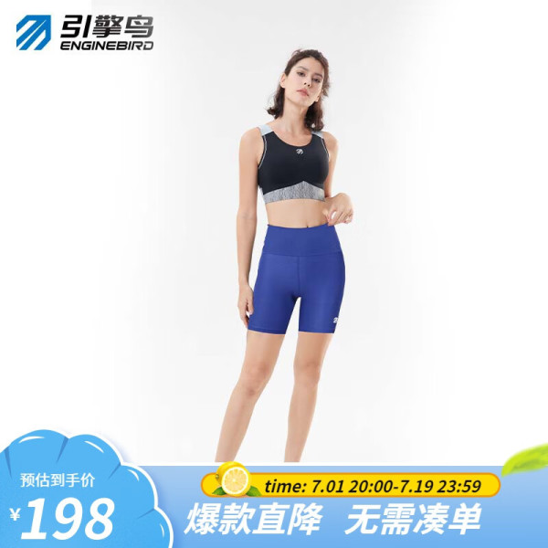 引擎鸟 蜂鸟四分运动裤女高腰提臀收腹紧身裤弹力压缩跑步速干短裤 方钠石蓝 M
