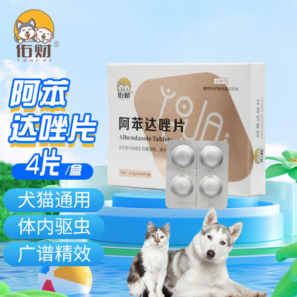 佑财 宠物体内驱虫药 猫咪狗狗小幼猫小型幼犬用品除蛔虫绦虫线虫等寄生虫打虫药品 阿苯达唑片200mg*4片/盒