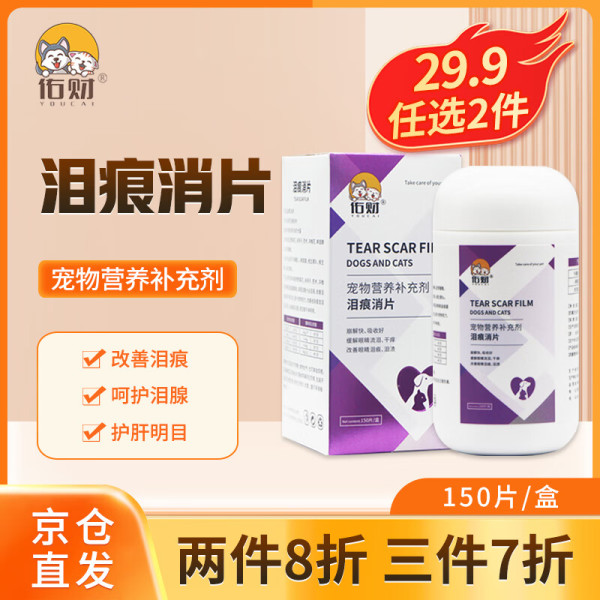 佑财 去泪痕片150片 猫咪狗狗通用脸部泪腺清洁营养品泰迪博美去泪痕粉泪痕消片