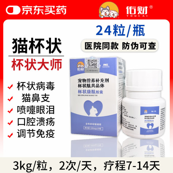 佑财 猫杯状大师胶囊24粒猫咪呼吸道代谢问题杯状病毒平衡免疫力系统