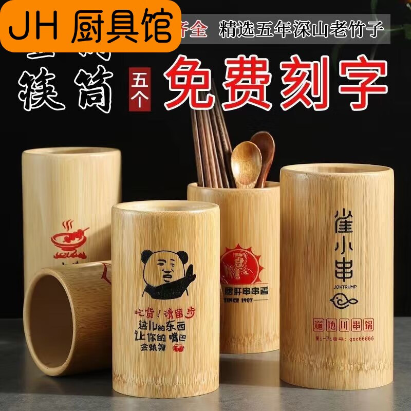 realpurity竹签筒筷子筒工厂直销饭店商用餐厅定制logo串串香筷筒筷子桶筷笼 光面12cm