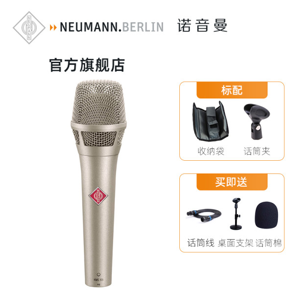 NEUMANN德国进口诺音曼 KMS105 手持电容麦克风专业演出演唱纽曼有线话筒主播直播唱歌设备 诺音曼KMS105 艾肯4nanos声卡