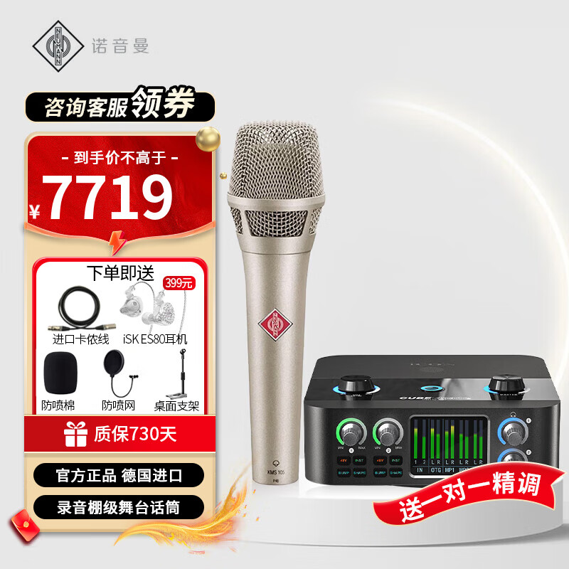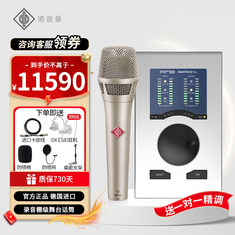 NEUMANN 诺音曼KMS105电容麦克风专业演出K歌录音主播直播话筒设备全套 KMS105+娃娃脸套装(需接电脑)