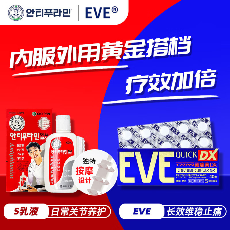 日本白兔EVE金色止疼药40粒 安提普拉敏止痛S乳液100ml内服外用黄金搭档解热镇痛消炎止痒