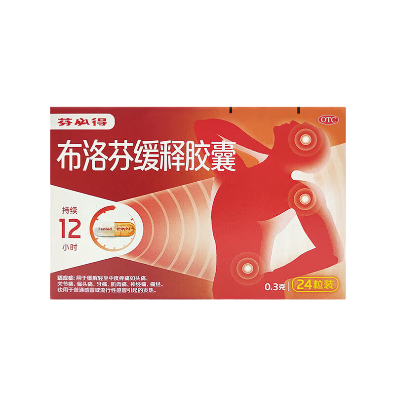 止痛镇痛用药[芬必得] 布洛芬缓释胶囊24粒 缓解疼痛头痛关节痛牙痛肌肉痛神经痛痛经感冒引起的发热 布洛芬1盒 蒲地蓝1盒