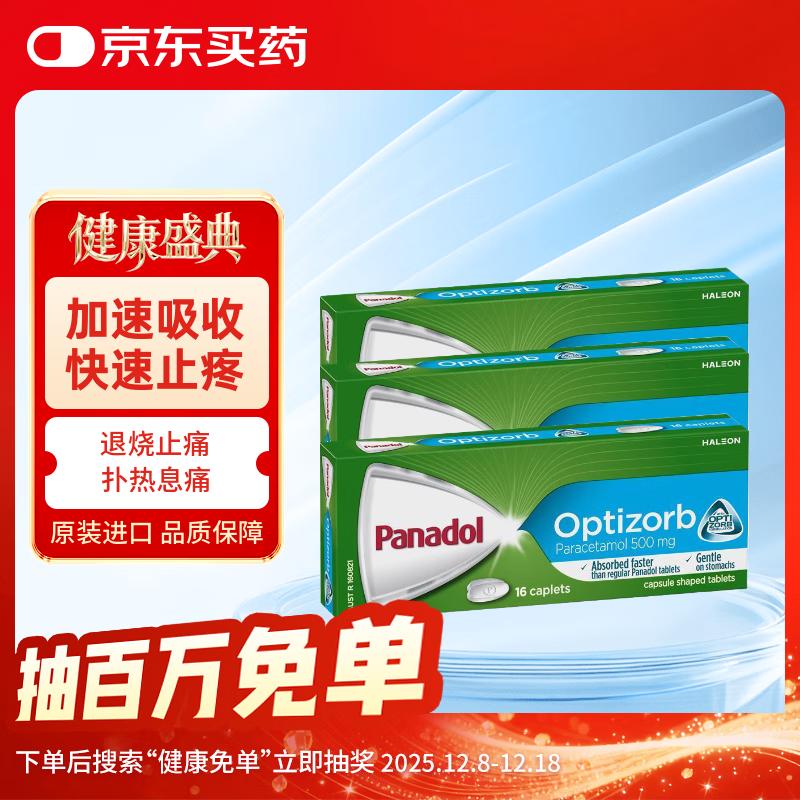 【48粒】澳洲Panadol必理痛止痛解热镇痛药发烧温和版布洛芬头痛经痛Optizorb配方快速吸收止疼药16片*3盒