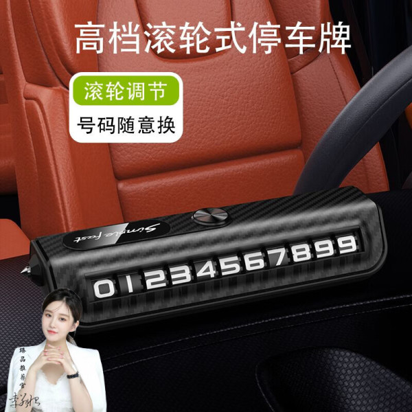 Xianwei 先唯 汽车临时停车号码牌车载挪车电话牌滚轮移车车内破窗逃生锤安全锤 碳纤黑色[自带安全锤]滚轮拨动 [无标通用]