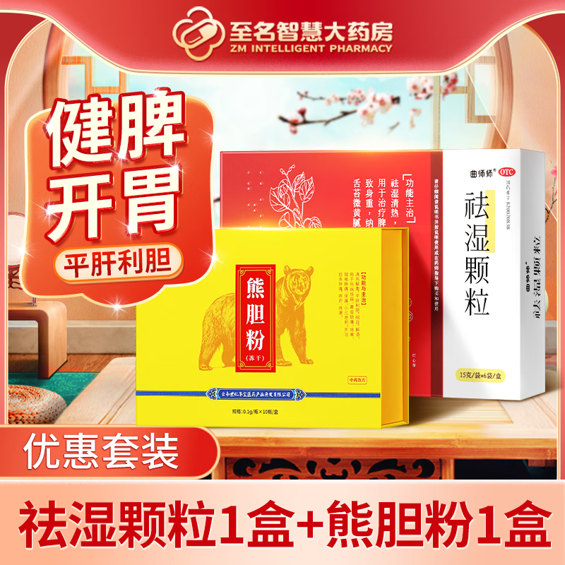 曲师师祛湿颗粒6袋/盒健脾祛湿去除湿气瘦肚子调理脾胃清热开胃治疗脾胃湿热所致身重纳呆便溏舌苔微正品 祛湿颗粒 熊胆粉1盒