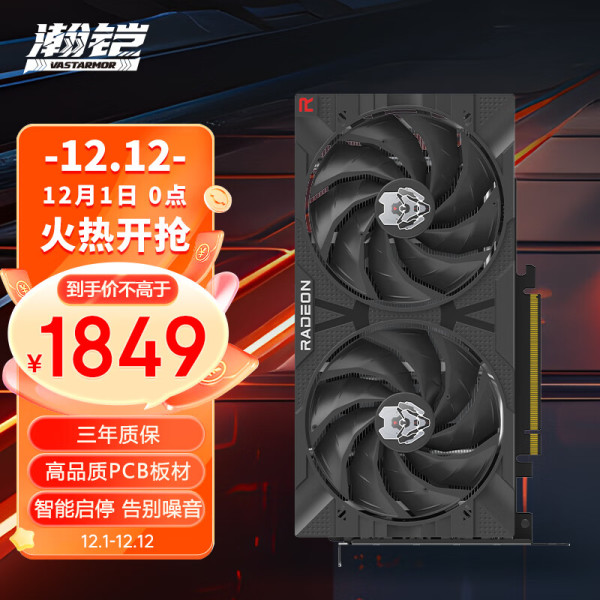 瀚铠(VASTARMOR)AMD Radeon RX 7700 XT 黑色合金 双风扇 12GB GDDR6 RDNA 3架构电竞游戏显卡