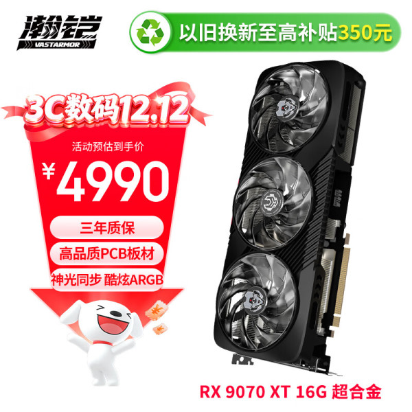 瀚铠(VASTARMOR)AMD RADEON RX 9070 XT 16GB OC 超合金ULTRA 旗舰级超强性能 ARGB灯效 电竞游戏AI显卡
