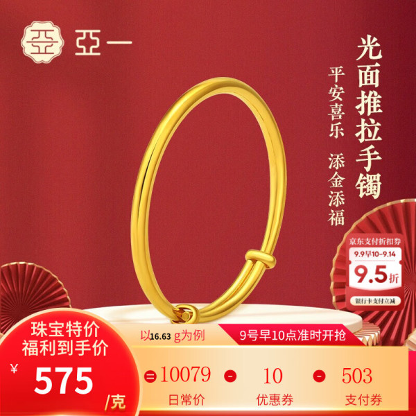 亚一黄金光面推拉手镯黄金手饰婚嫁镯子实心 约16.63g