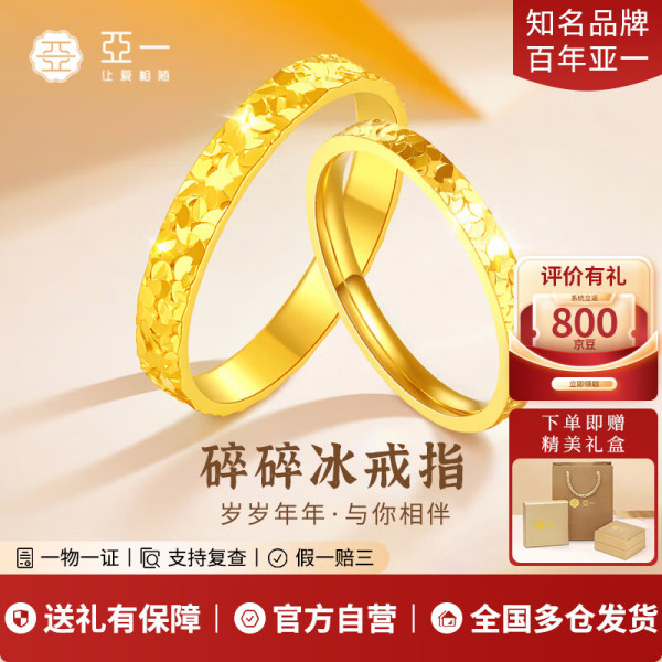 亚一 黄金戒指 碎碎冰冰金女款 固口足金戒指