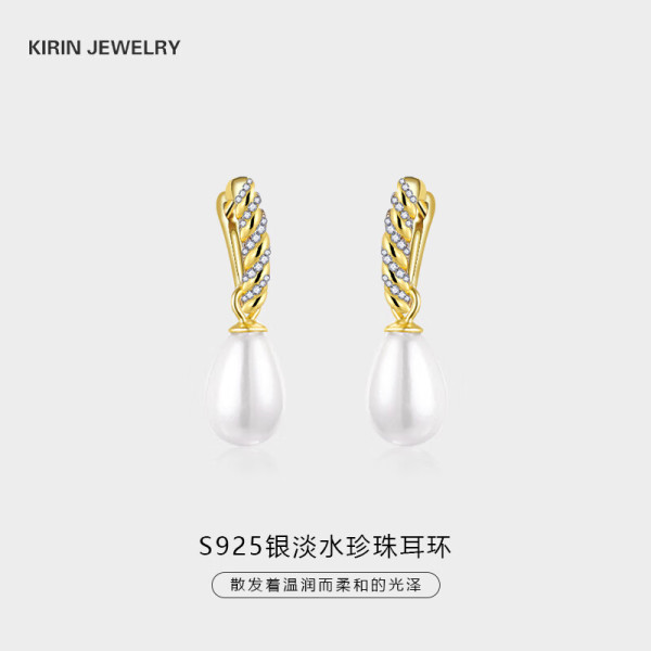 KR 强极光 S925银淡水珍珠耳环 9-10mm