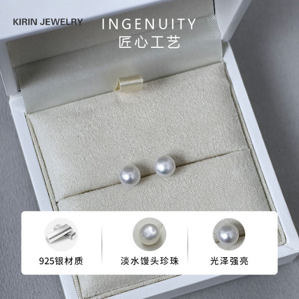KR【配证书】馒头型真淡水珍珠耳钉女 925银2025新款耳环情人节礼物 约7-8mm