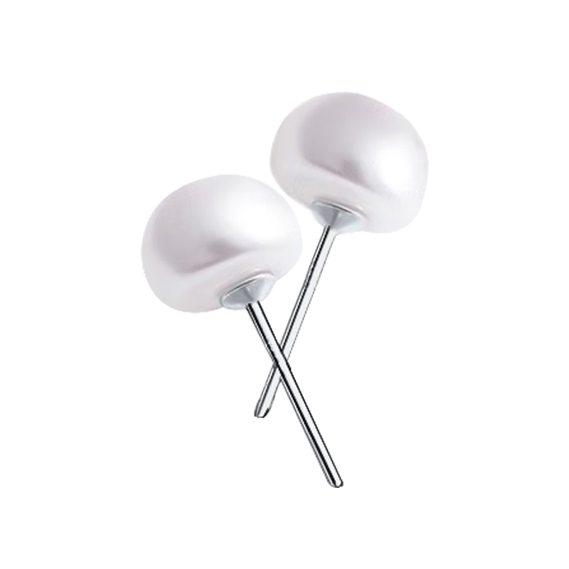 KR 馒头型真淡水珍珠耳钉女 925银约7-8mm