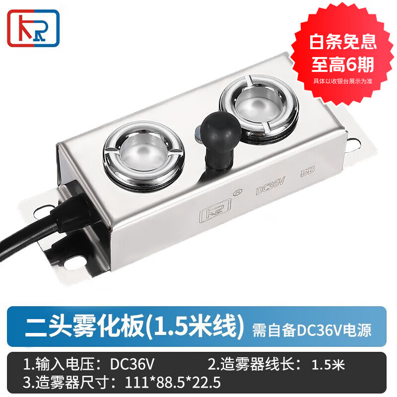 KR超声波雾化器 雾化板 大雾量鱼池盆景水雾喷雾器水池假山烟雾器园林造景雾化加湿器 二头雾化器【需自配DC36V电源】