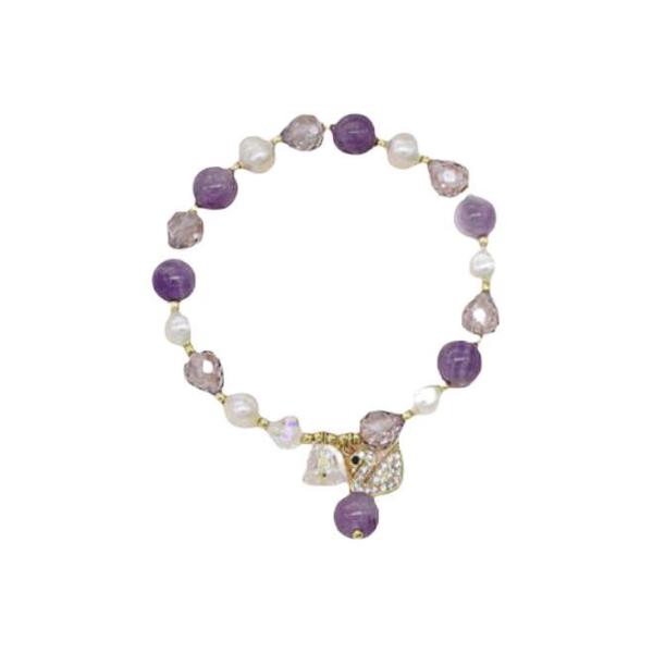 KR J01450 天鹅14K黄金紫水晶珍珠手链