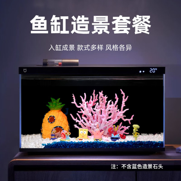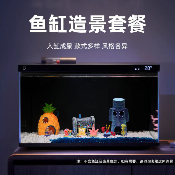 阿拖 ATUO 小米鱼缸造景装饰摆件 菠萝屋水族 卡通公仔海绵宝宝躲避屋套装