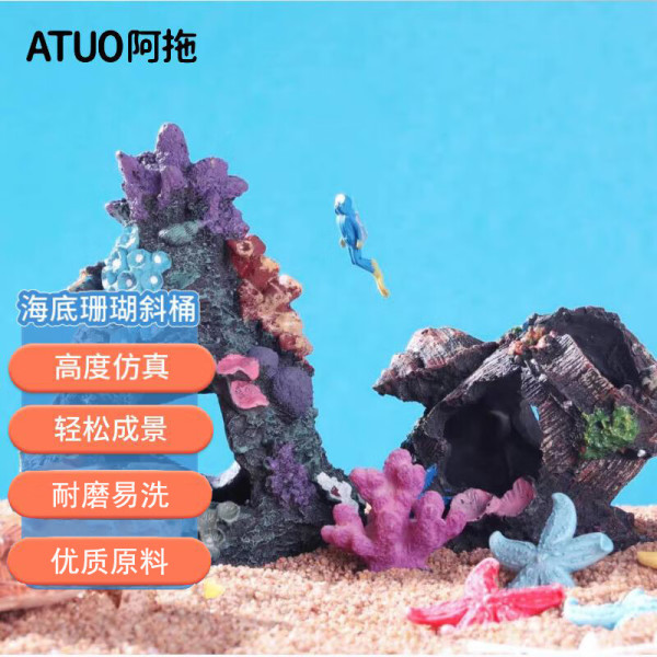 阿拖(ATUO)鱼缸造景 水族珊瑚摆件 海底珊瑚斜桶套餐(适用30-50cm鱼缸)