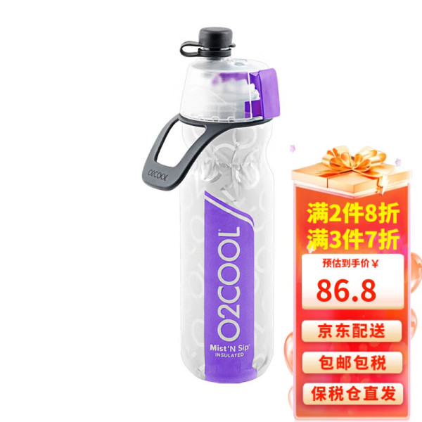 O2COOL美国运动喷雾水杯 保冷户外便携水壶随手杯夏季男女冰水瓶 经典款-紫色 590ML 590ml