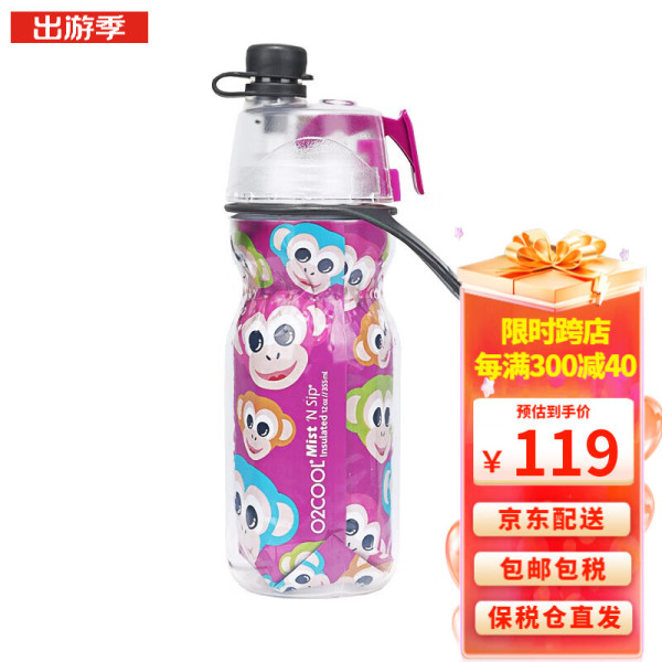 O2COOL 美国喷雾水杯 保冷户外便携水壶随手杯冰水瓶 紫色-猴子 355ML