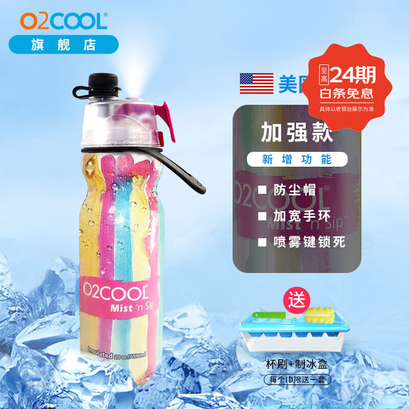 O2COOL 美国运动喷雾水杯 保冷户外便携水壶随手杯夏季男女冰水瓶590ML