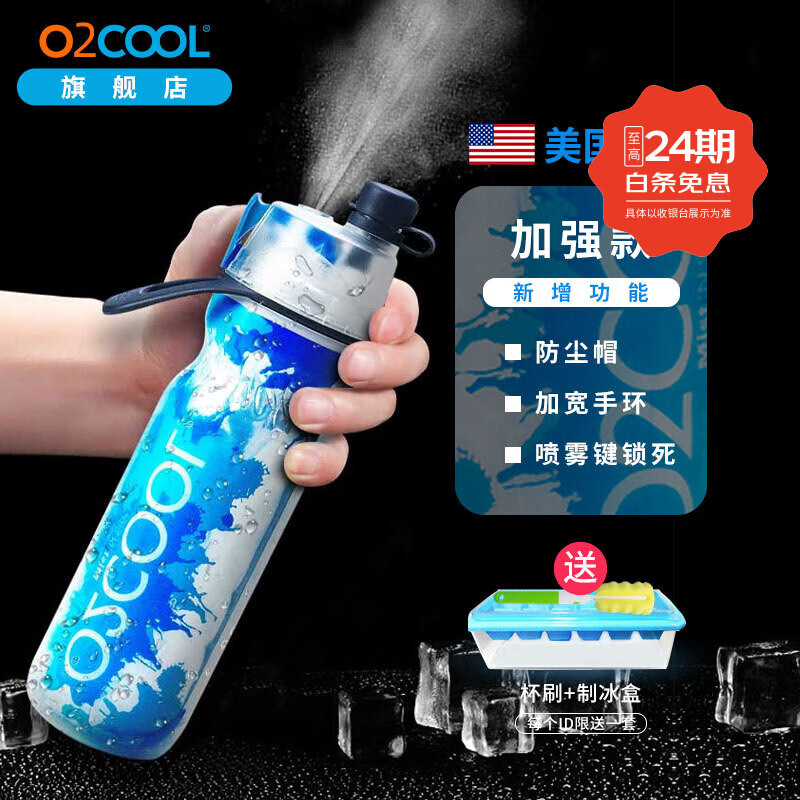 O2COOL喷雾运动水杯美国男女户外骑行随手杯大容量