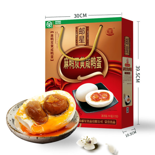 邮星 高邮双黄咸鸭蛋超大麻鸭双黄蛋12枚980g礼盒熟 江苏扬州特产 超大双黄蛋甄选礼盒980g/12枚