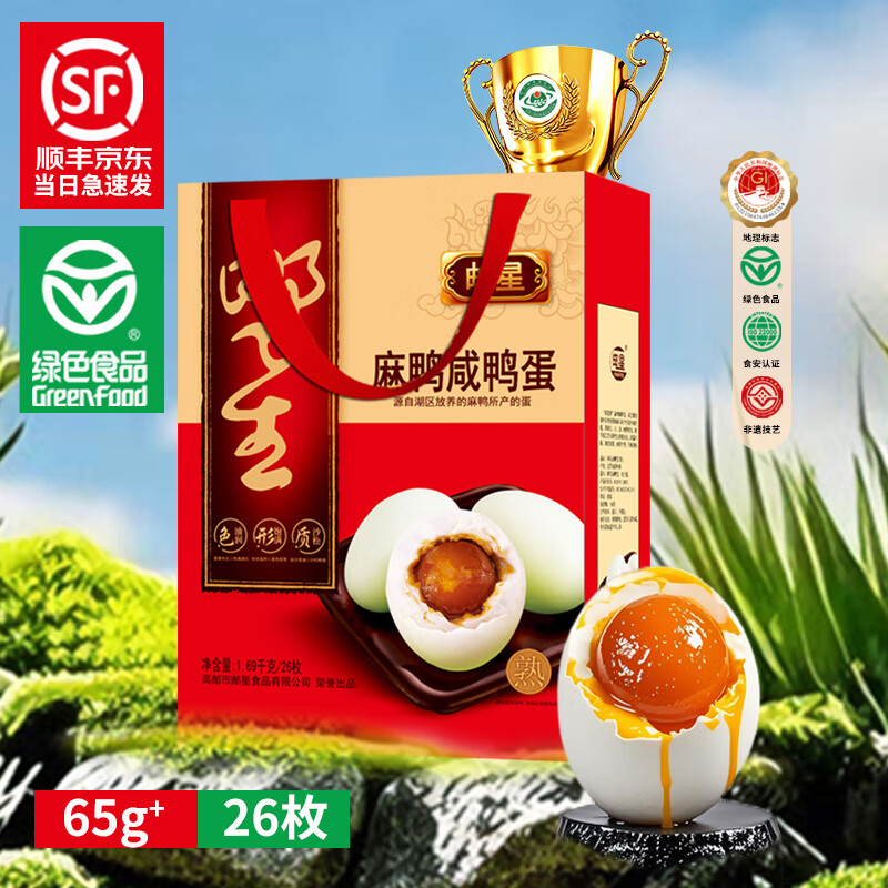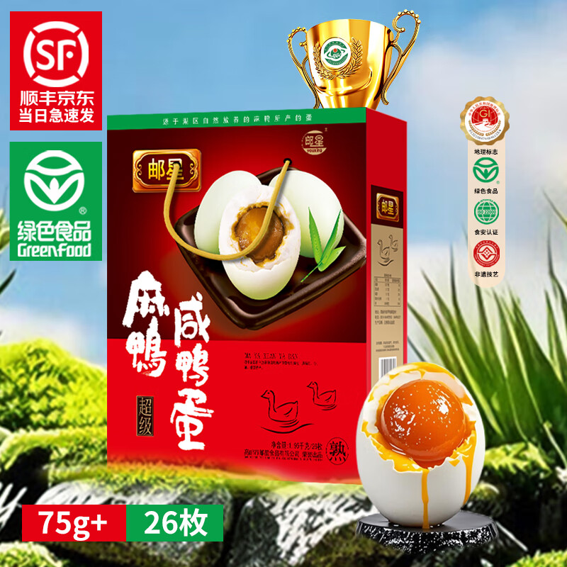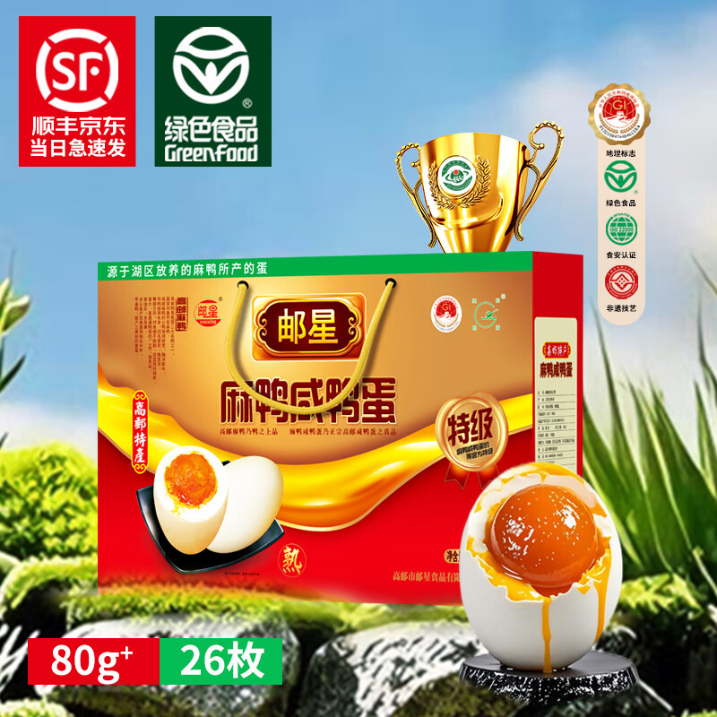 邮星高邮麻鸭咸鸭蛋26枚超大端午礼盒装散养流油咸蛋即食熟特产团购 特等咸蛋王26枚商超礼盒