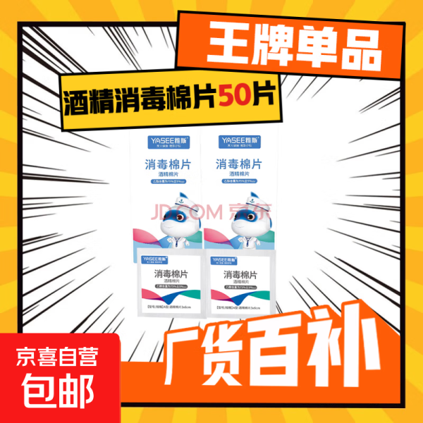 YASCO 雅思 雅斯医用75%酒精消毒棉片一次性便携式独立包装杀菌湿纸巾单片 酒精棉片一盒独立包装
