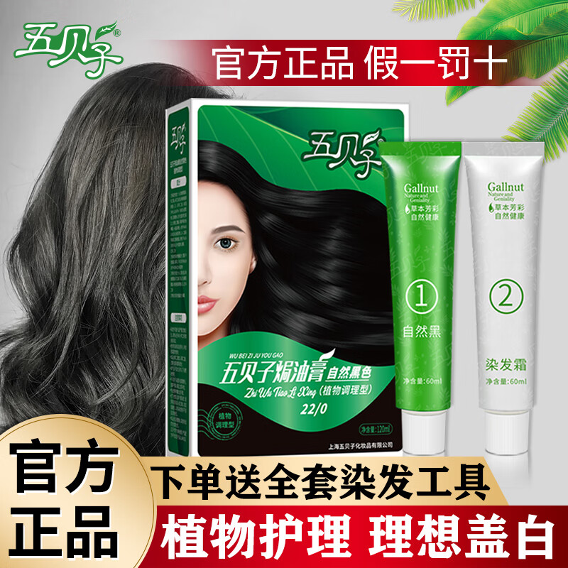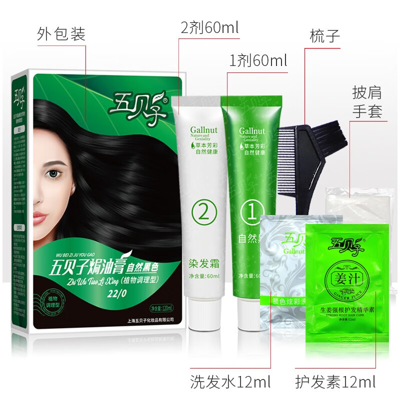 五贝子染发剂染头发霜焗油膏自然黑刺激小男女遮盖白发 自然黑22/0