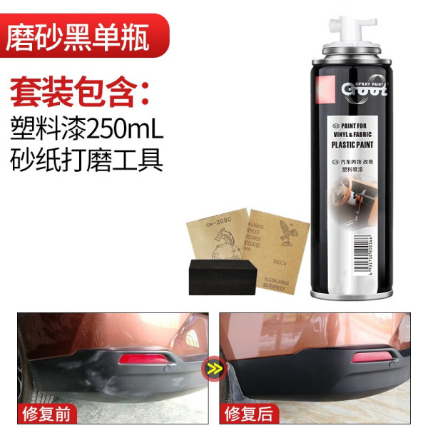 GOOT汽车塑料自喷漆保险杠补漆划痕修复裙边轮眉修补翻新磨砂亚光黑色 磨砂黑250ml塑料漆单瓶 车型通用