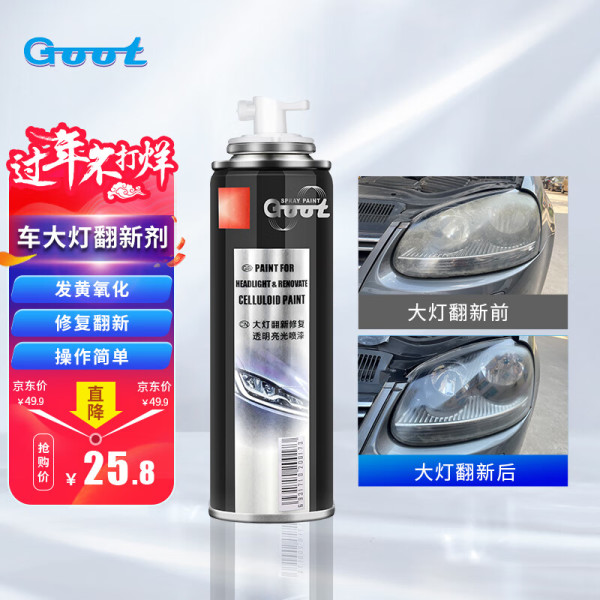冈图 汽车大灯翻新修复液车灯清洗还原翻新剂灯罩发黄老化划痕修复