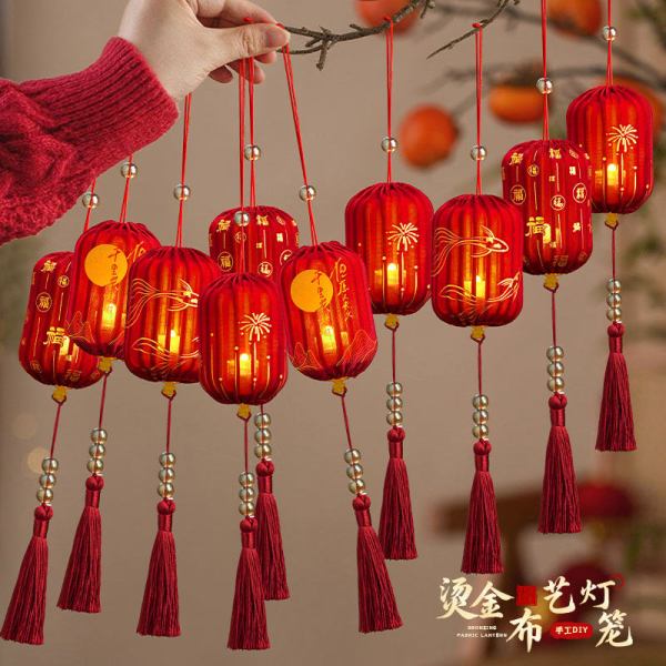 马年装饰红灯笼2026过新年春节儿童手提花灯发光宫灯手工diy
