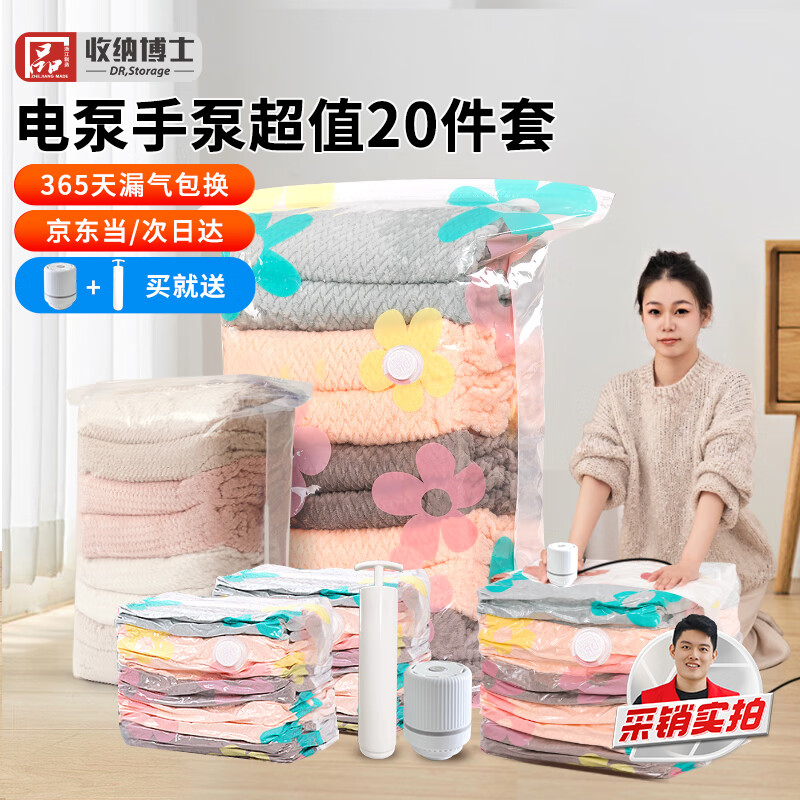 收纳博士 真空压缩收纳袋电动气泵棉被子羽绒衣服收纳袋20件套