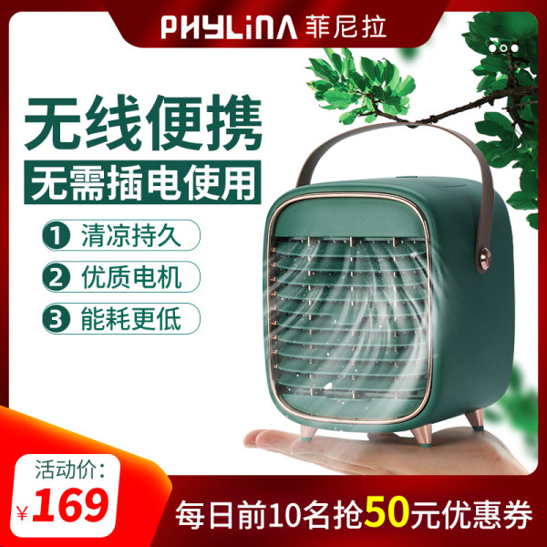 迷你小空调轻奢桌面冷风机车载小风扇制冷神器便携式随身usb小型电风扇可充电学生宿舍静音办公室降温水冷扇(墨绿色)