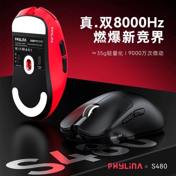 phylina 无线鼠标游戏电竞电脑办公蓝牙3950双8K无孔轻量化S480